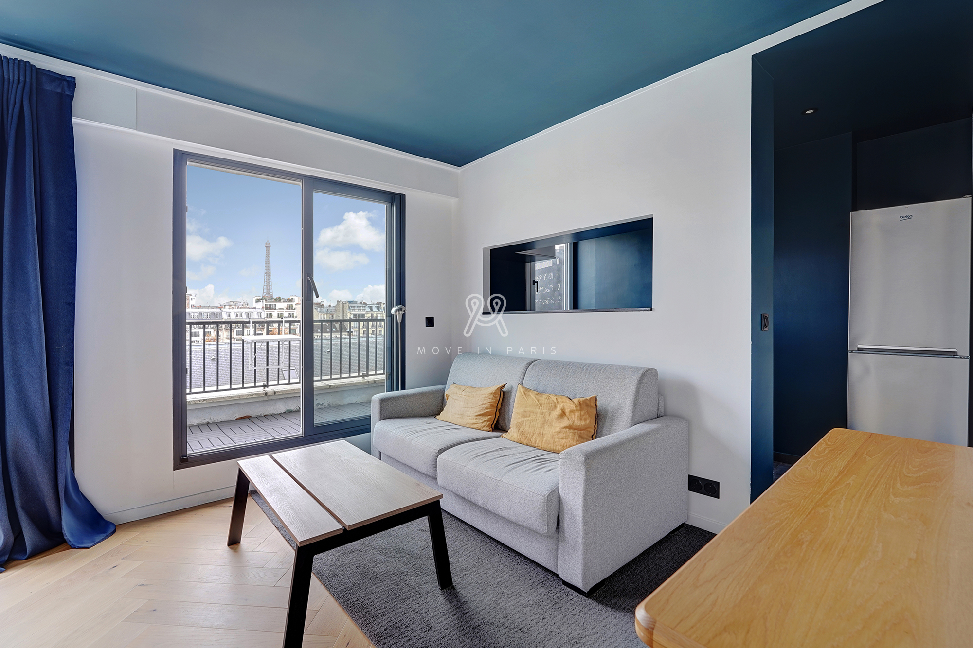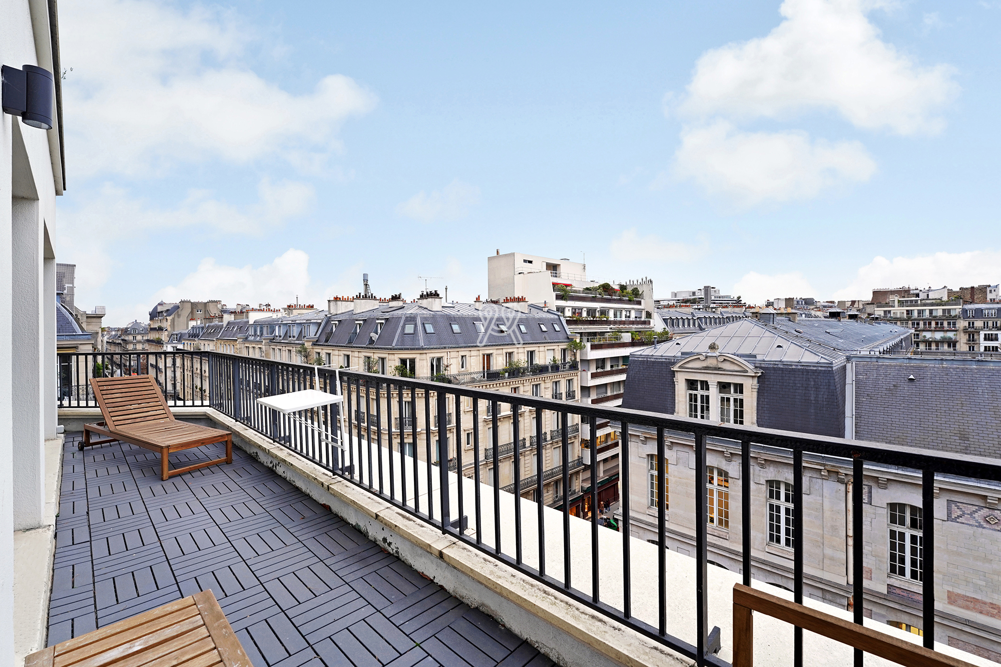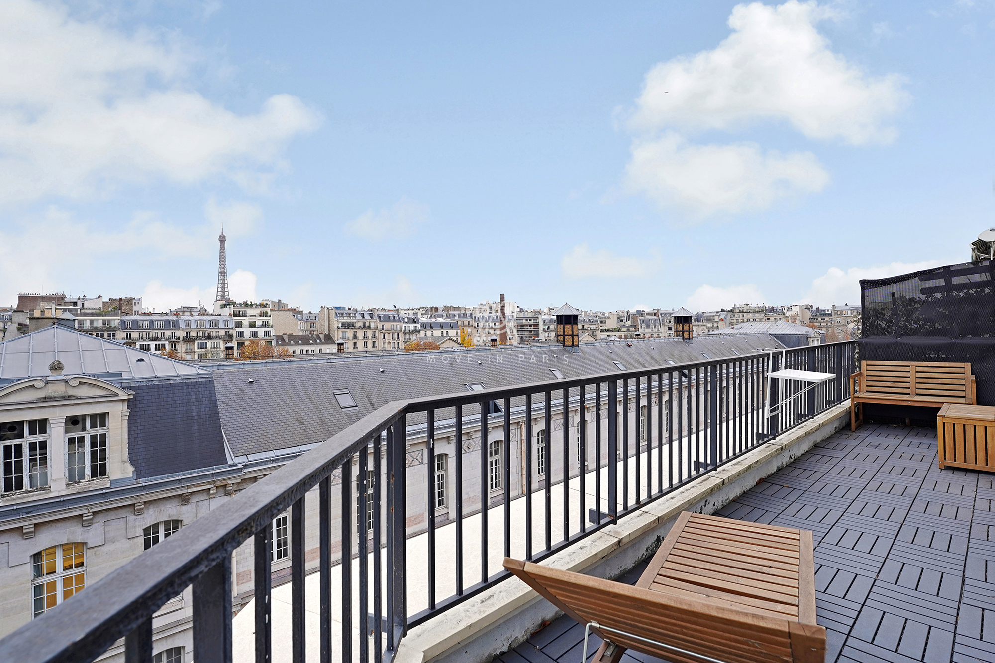 Une terrasse privative ensoleillé avec vue Tour Effeil