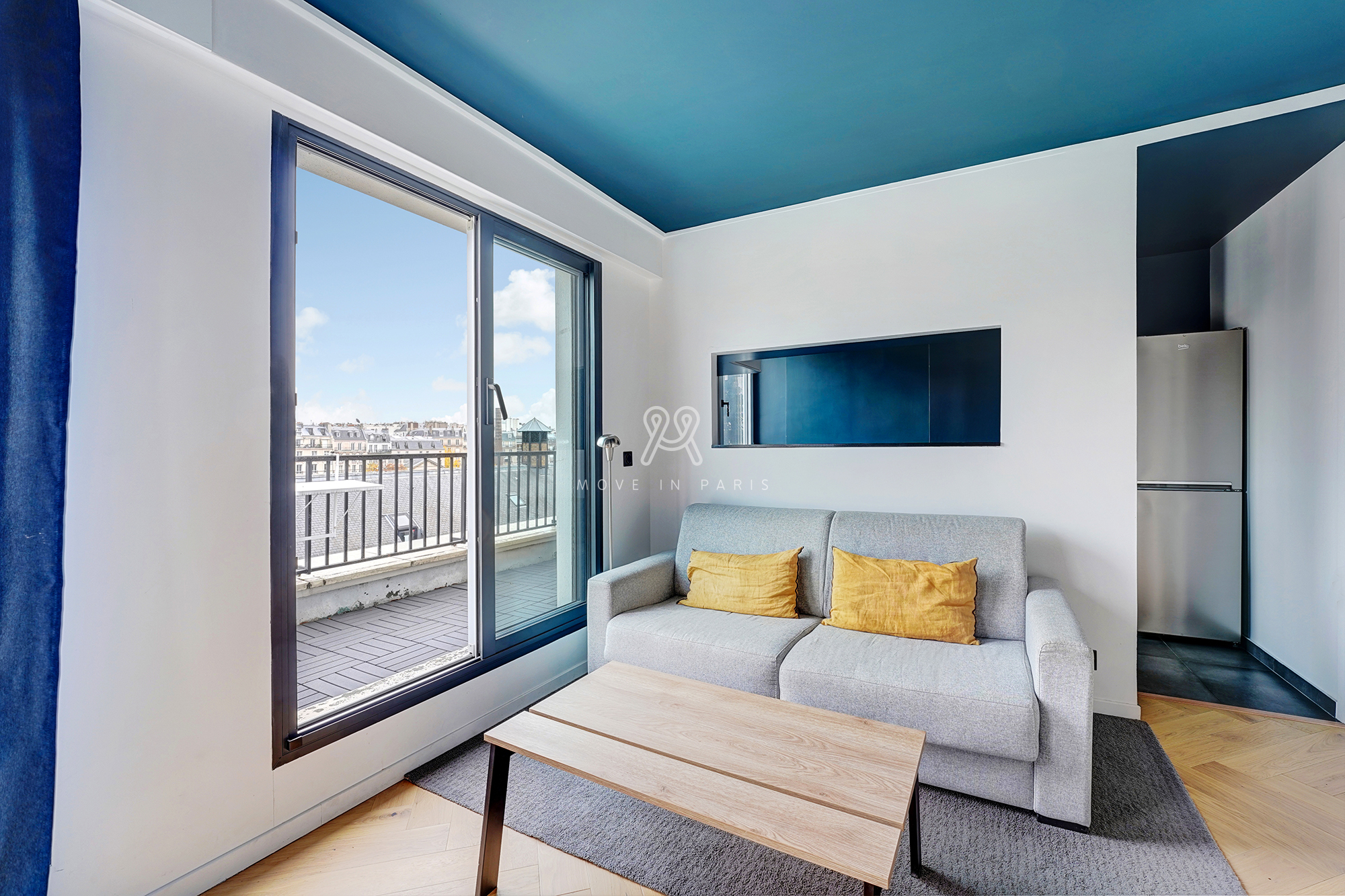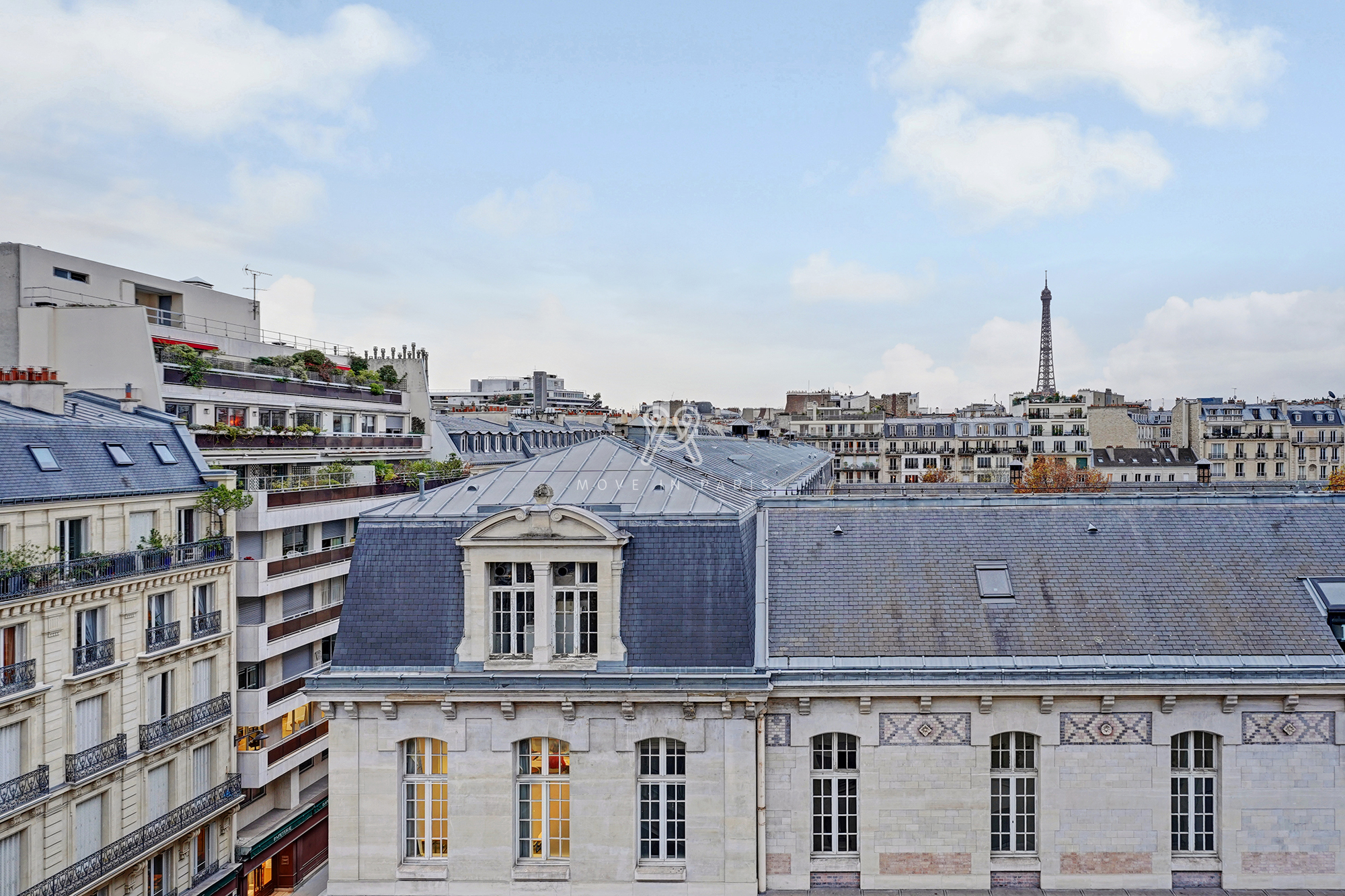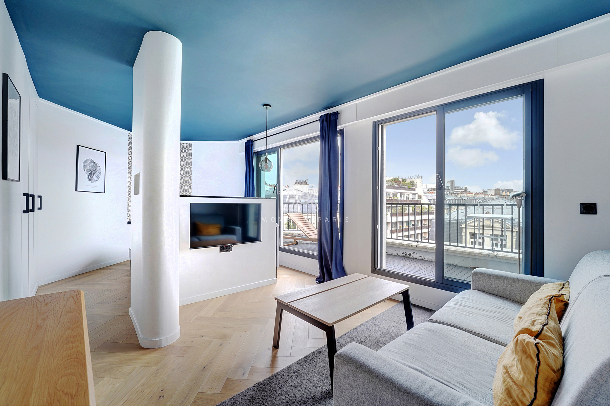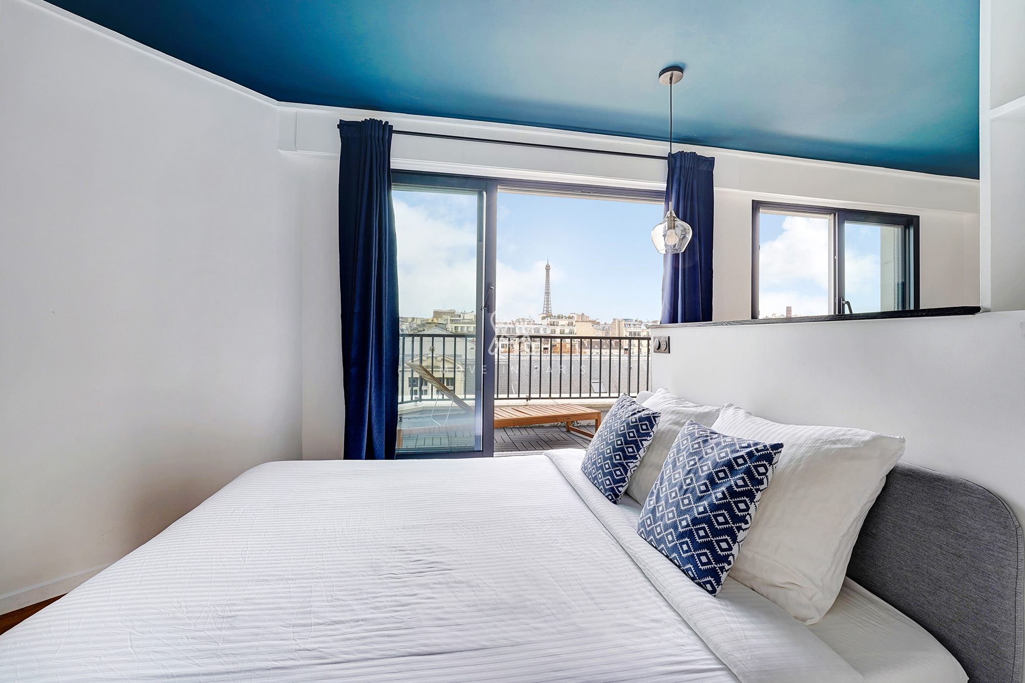 Une terrasse privative ensoleillé avec vue Tour Effeil