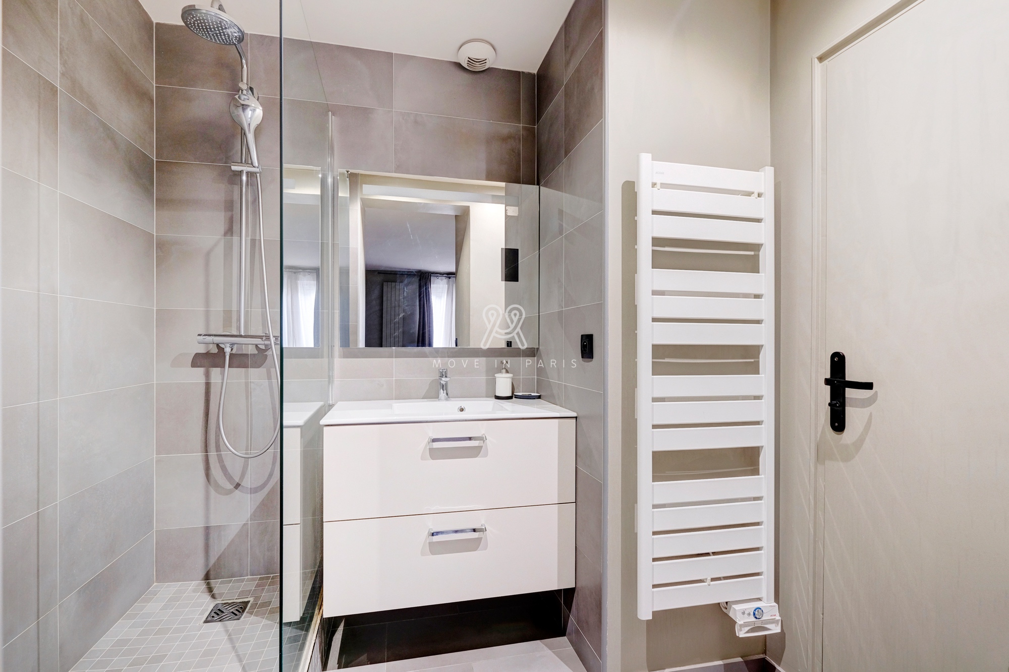 et du rangement. Salle d’eau avec douche. WC séparés. Chauffage et eau chaude individuels électriques.